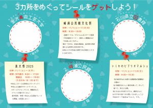 令和7年11月1日(土)、11月2日(日)に、小立野2丁目地区の3施設で開催されているイベントの回遊性を図る連携企画として「シールラリー」を開催します。