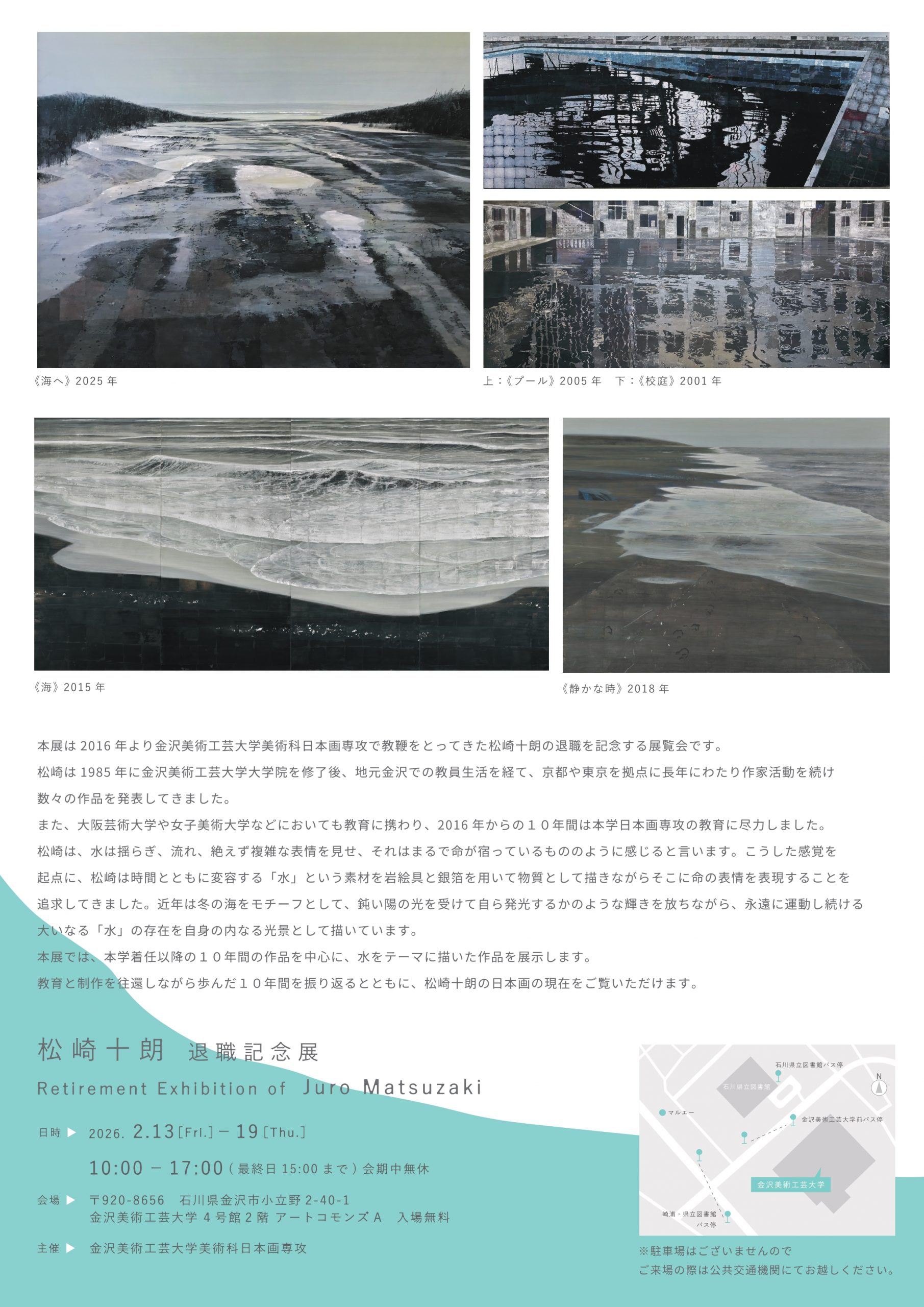 本展は2016年より本学の美術科日本画専攻で教鞭をとってきた松崎十郎教授のご退職を記念する展覧会です。