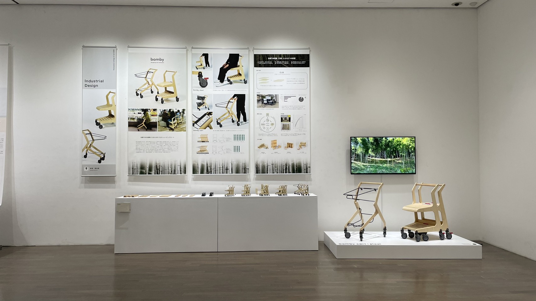 美術工芸研究科 デザイン専攻 製品デザインコース 坂東 凜汰朗 《放置竹林に着目したCLBを用いたショッピングカートとその循環の研究》